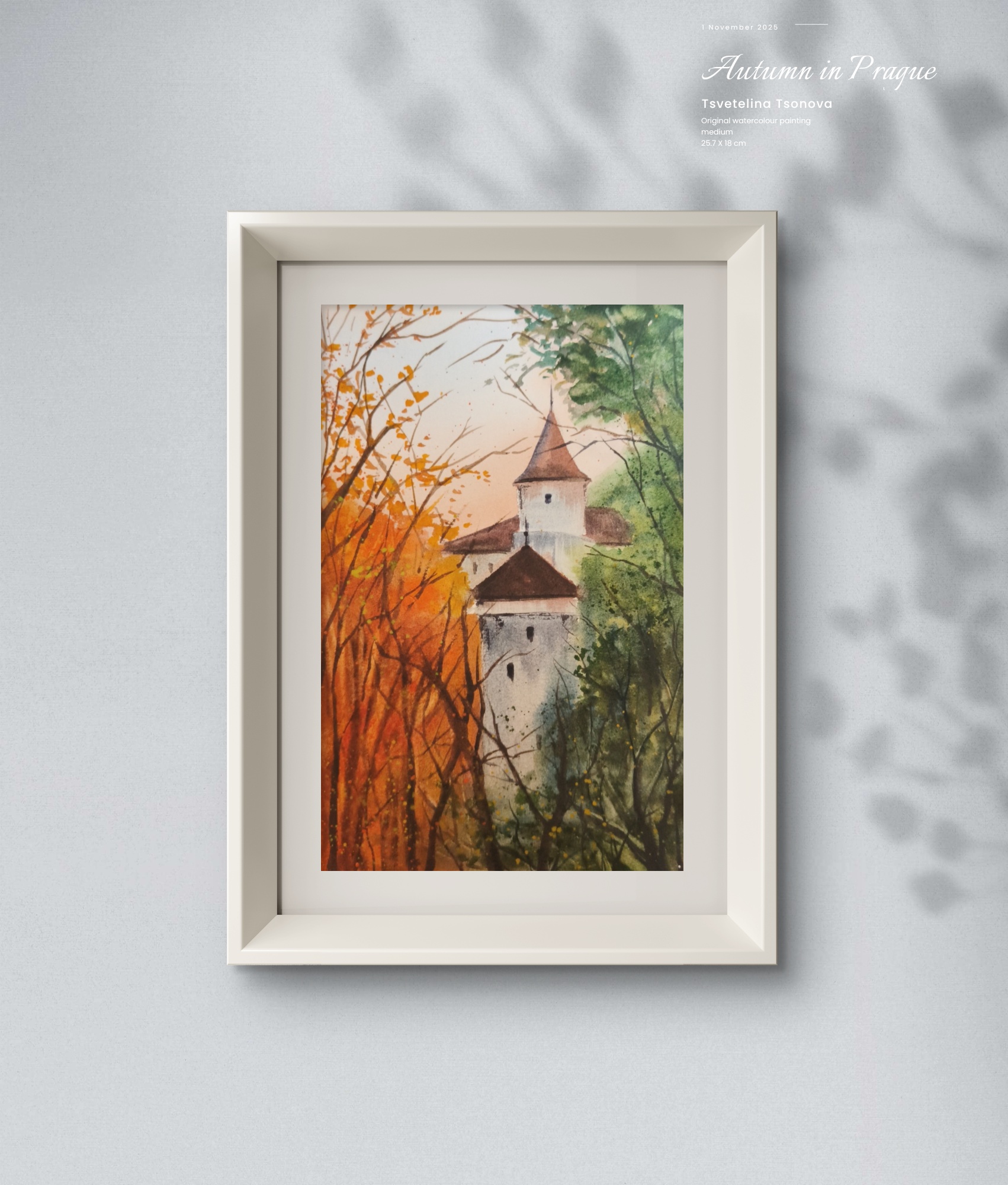 Original watercolor painting “Autumn in Prague”, painted on 100% cotton Baohong watercolor paper, cold press. 300 gr.