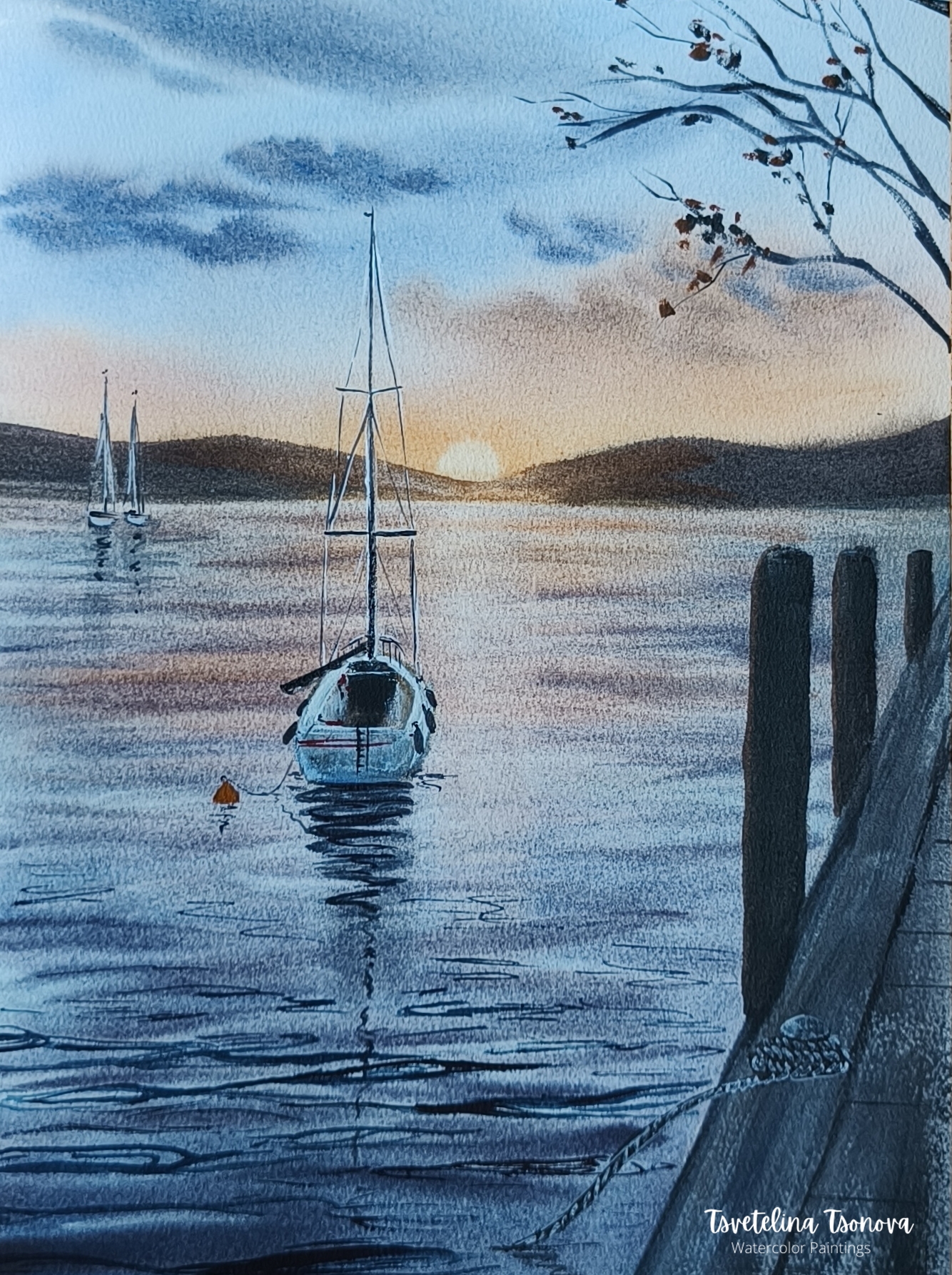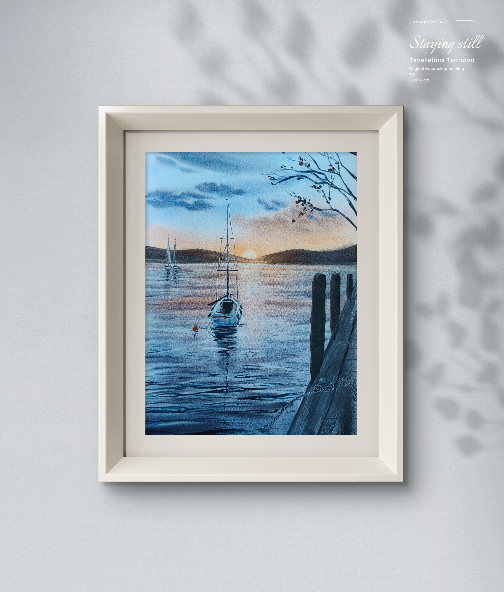 Original watercolor painting “Staying still”, painted on 100% cotton Baohong watercolor paper, cold press. 300 gr.